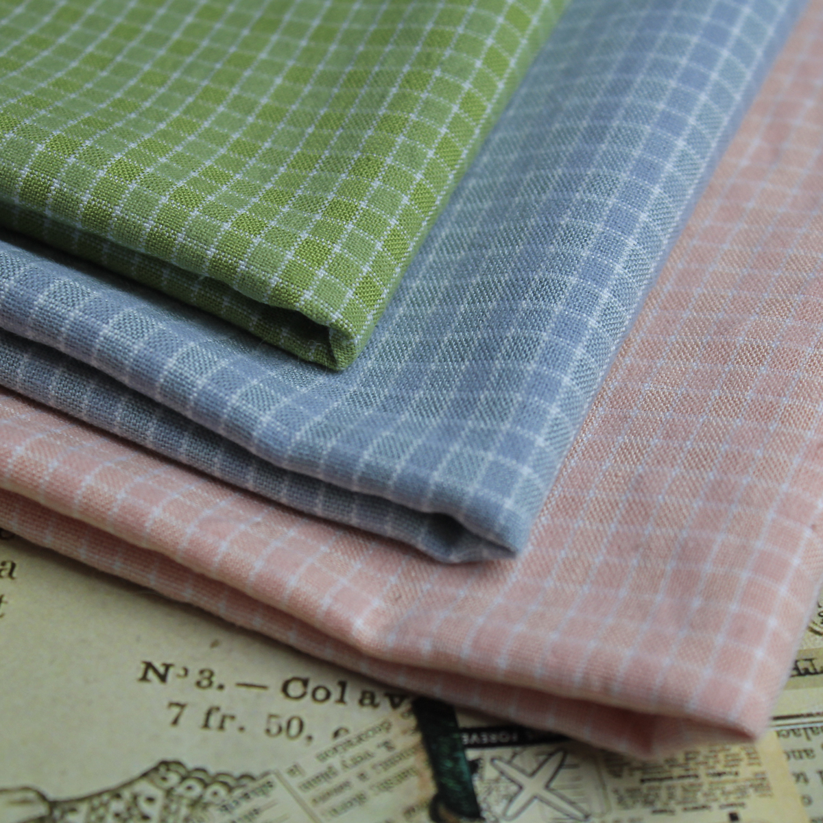Ткань представлена в нескольких цветах. Потрясающий двусторонний фактурный хлопок с мелкой клеточкой. Есть небольшой эффект жатости, что придает ему уникальность. Отлично подходит миниатюрным куклам, мишкам и игрушкам.