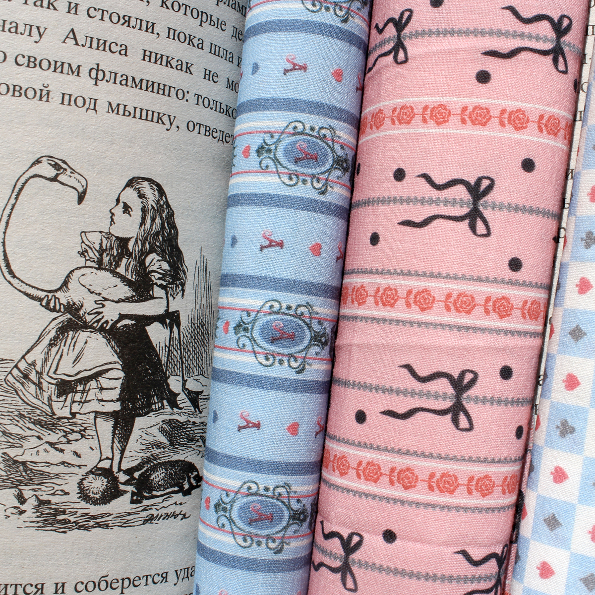 Коллекция "Алиса" представлена 9 принтами, гармонично сочетающимися между собой. Все ткани имеют приглушенный белый цвет. Принты от 0,3-10мм.