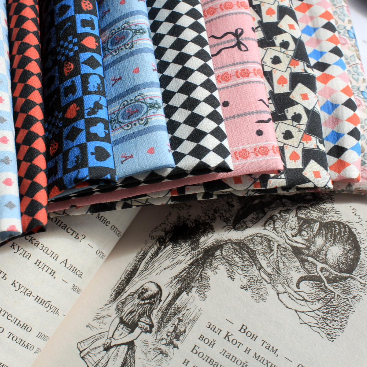 Коллекция "Алиса" представлена 9 принтами, гармонично сочетающимися между собой. Все ткани имеют приглушенный белый цвет. Принты от 0,3-10мм.