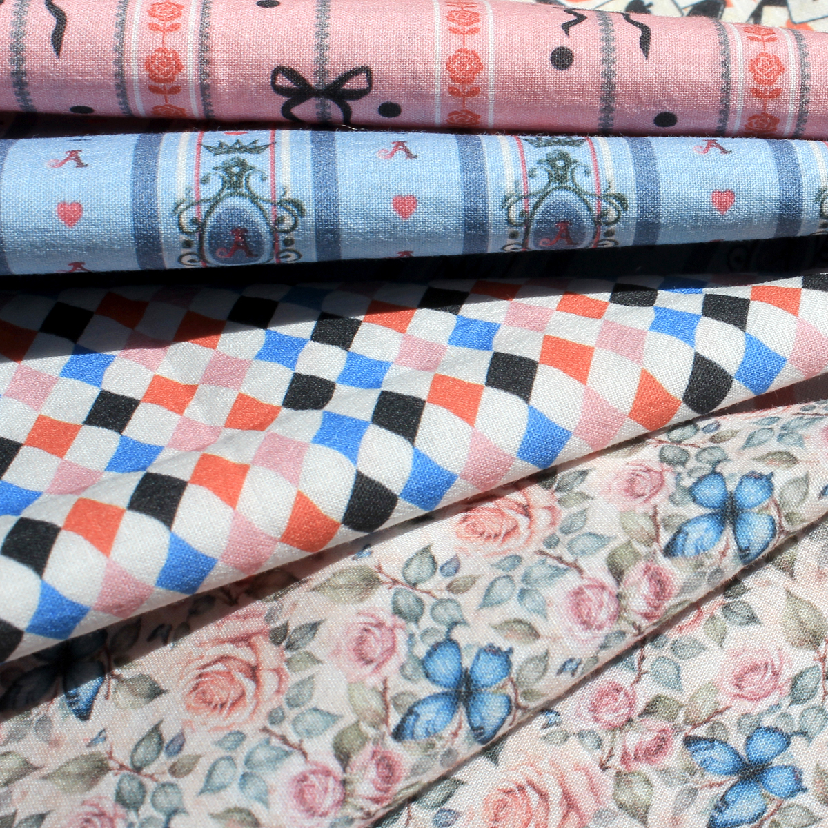 Коллекция "Алиса" представлена 9 принтами, гармонично сочетающимися между собой. Все ткани имеют приглушенный белый цвет. Принты от 0,3-10мм.