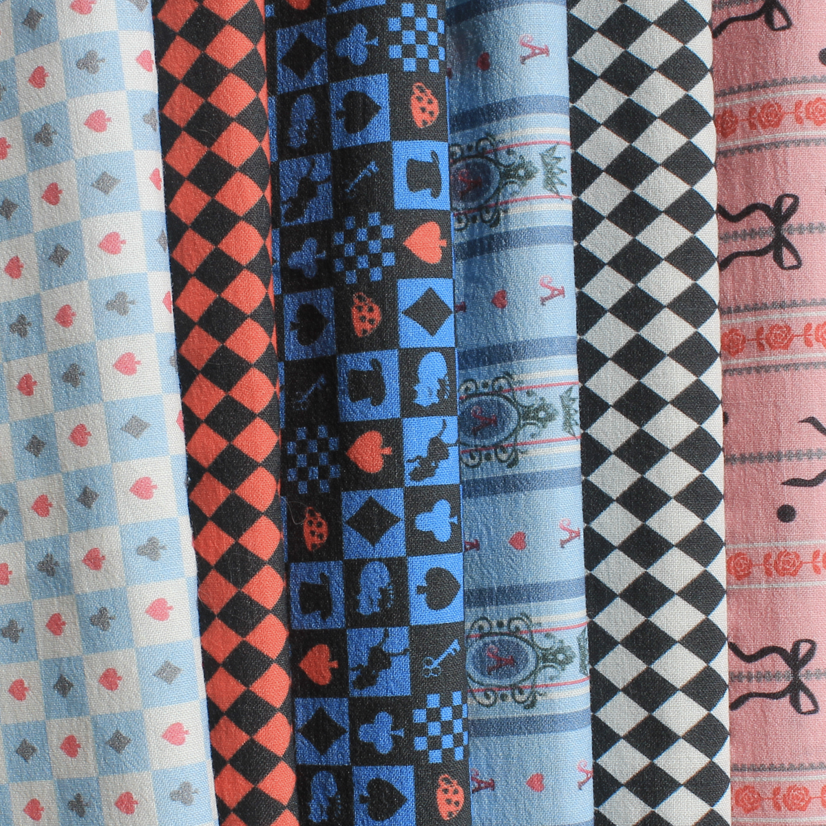 Коллекция "Алиса" представлена 9 принтами, гармонично сочетающимися между собой. Все ткани имеют приглушенный белый цвет. Принты от 0,3-10мм.